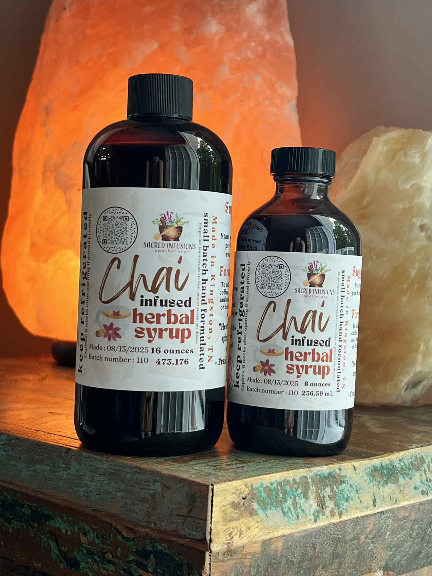 Autumn in a bottle. Our chai syrup is a must have for your refrigerator. Drizzle over yogurt, pancakes, waffles, granola. Sweeten your tea or coffee with our chai infused herbal syrup.