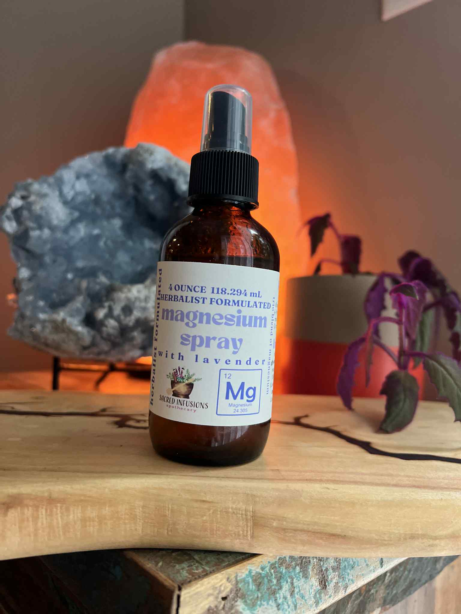Our herbalist formulated our magnesium spray with herbs that support over 300 biochemical processes in the human body. This carefully crafted small batch formula combines the wisdom of essential minerals like magnesium and essential oils such as lavender and vanilla; to promote overall health and wellness.